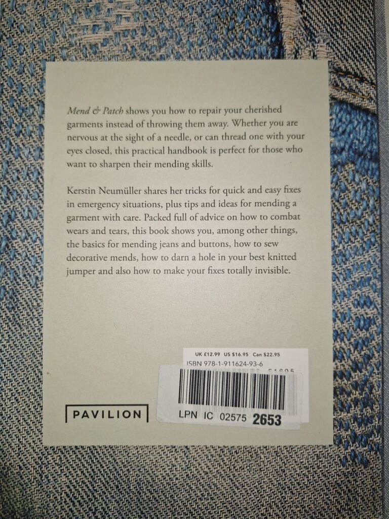 This book grabbed my attention as I found sending various pieces of clothing to professional tailors for repair could be expensive. Then there was the moment when I remembered my grandmother and Mother sitting at the kitchen table repairing various garments. I needed to get moving to start learning how to repair. I have also been quite horrified at the volume of cloths that were been thrown away into land fill. This pull to repair instead of throwing out was strong.